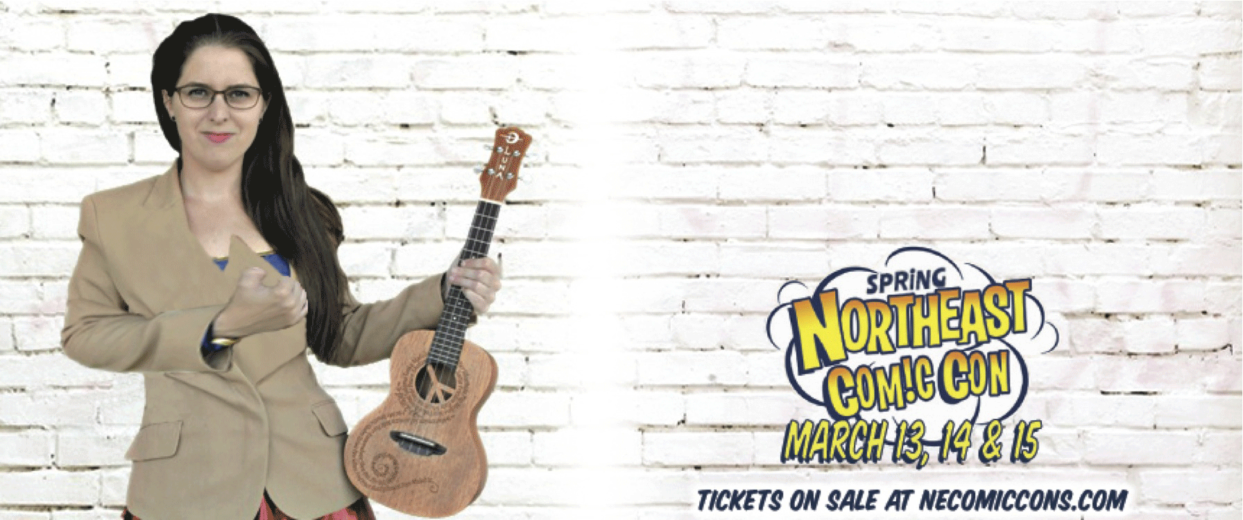 And on Sunday...Grab your uke and let's have some fun! Bring a ukulele and join us for the new, first ever Uke-Along at Northeast Comic Con! Everyone who brings a ukulele can stand on stage with me and we'll play some songs together for the audience. Wear your favorite costume (not required), and strum along to "Brown Eyed Girl", "The Lion Sleeps Tonight", "Let it Be", and "Free Fallin". No age restrictions! If you can play ukulele, you can be a part of our Uke-Along! Included with NECC ticket purchase! Ukuleles will not be provided, so please bring your own if you plan on participating. Learn the songs ahead of time by visiting www.tiffanyhulse.com/ukealong.